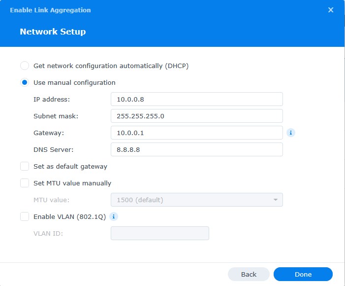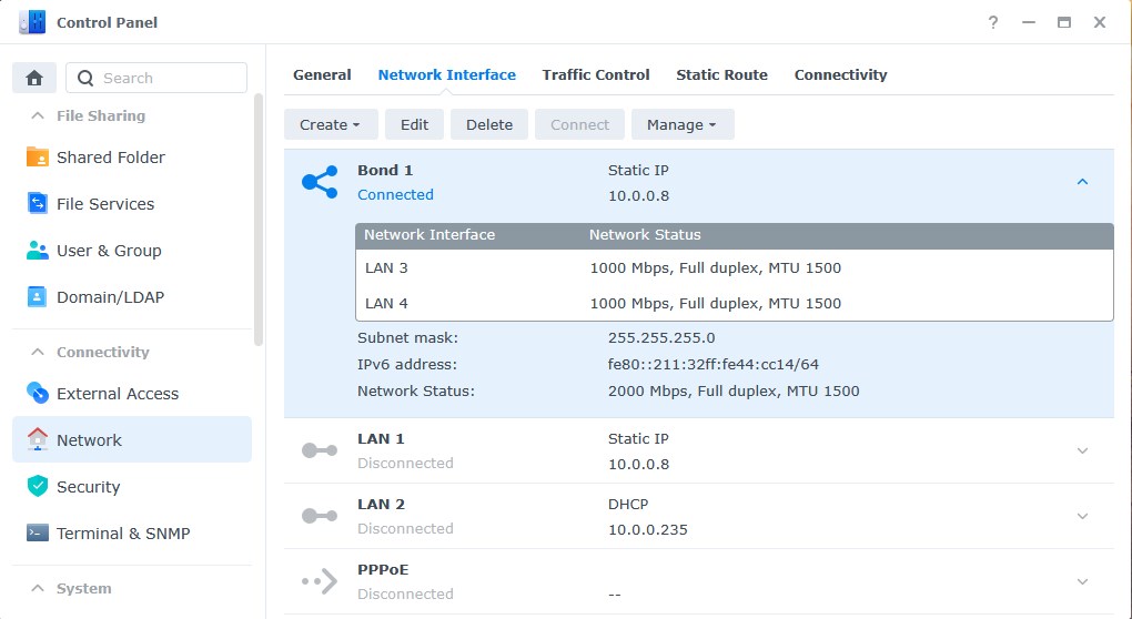 Di Synology Web Panel, navigasi ke Control Panel > Network > Network Interface: