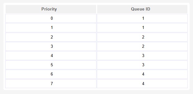 Pastikan lokasi queue untuk kedua prioritas di halaman Configuration > QOS > Priority to Queue: